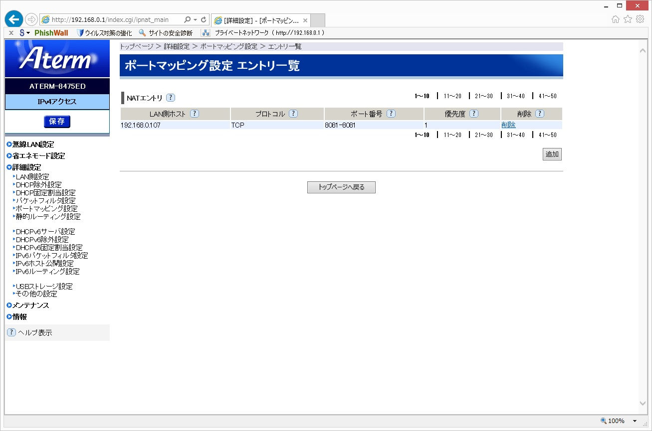 インターネットに公開する場合はルータでポートフォワーディングの設定が必要。