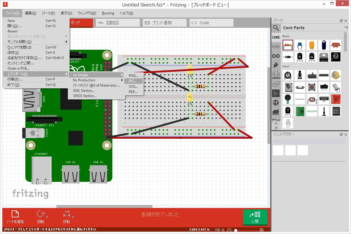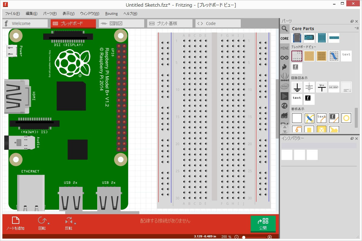 Raspberry Piの配線図が簡単に書けるフリーツールFritzingを見つけたので試してみた。
